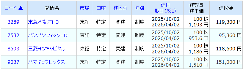 ・不動産セクターは他にも十分に投資しているので(3003 ヒューリックなど)、12月で返済売り。